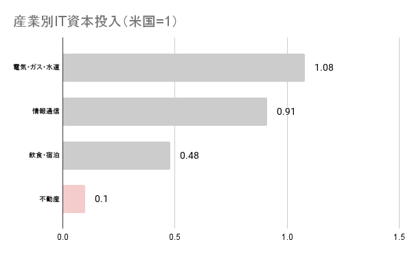 厚生労働省(2015年)の調査によると、不動産業界のITへの投資率は米国と比べて10%。