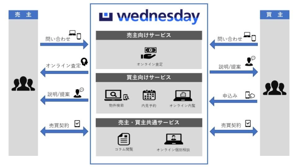 『Wednesday』では「人生で最も高い買い物だからこそ、人生で最も良い体験を」をコンセプトに、お客様が中古マンション物件売却から購入、そして購入後のサポートまでを一気通貫して受けることのできるプラットフォームです。