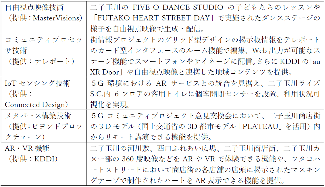・東急、二子玉川エリアマネジメンツ、二子玉川商店街振興組合:実証エリアの調整・提供