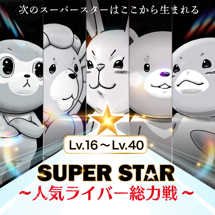 「スーパースター vol. 20」は、ライブ配信アプリ「everylive」で2023年2月17日から2月28日に開催されたアプリ内イベント。「スーパースター vol. 20」はイベント開始時にレベル16〜40のライバーを対象としたもので、イベント期間中に「スーパースター/NEXTスター」などのイベント指定ギフトの「ポイント」数でランキングが決まります。RainbowLIVE所属の『にんぴ』『ゆうあ.yuua』『まるmaru』『れいにゃん』が当イベントに参戦し、トップ4位以内を独占しました。