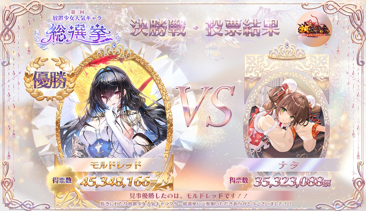 長きにわたり「第三回放置少女人気キャラ総選挙」にご参加いただき、