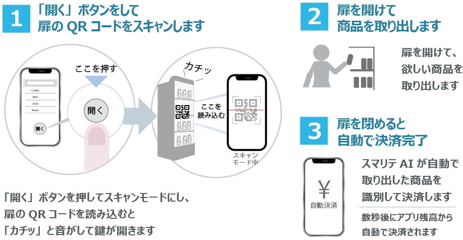 「QRコードを読み込み、扉を開けて、好きな商品を取り出すだけ」