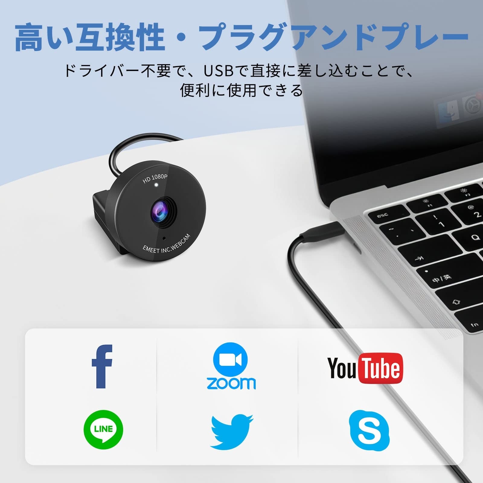 【高い互換性を有する】Windows XP/Vista/Windows7/8 / 8.1 / 10、Mac OS10.4及びMac OS10.4以降などのさまざまなOSで動作でき、SkypeやLINE、zoomなど様々なアプリやソフト利用できるので、仕事にはもちろん、離れた場所にいる友人や家族との交流がスムーズに進められます。ご注意:本製品はUSB A端子であるため、MacBookとの接続がUSB A-TYPE C変更アタプタが必要です。