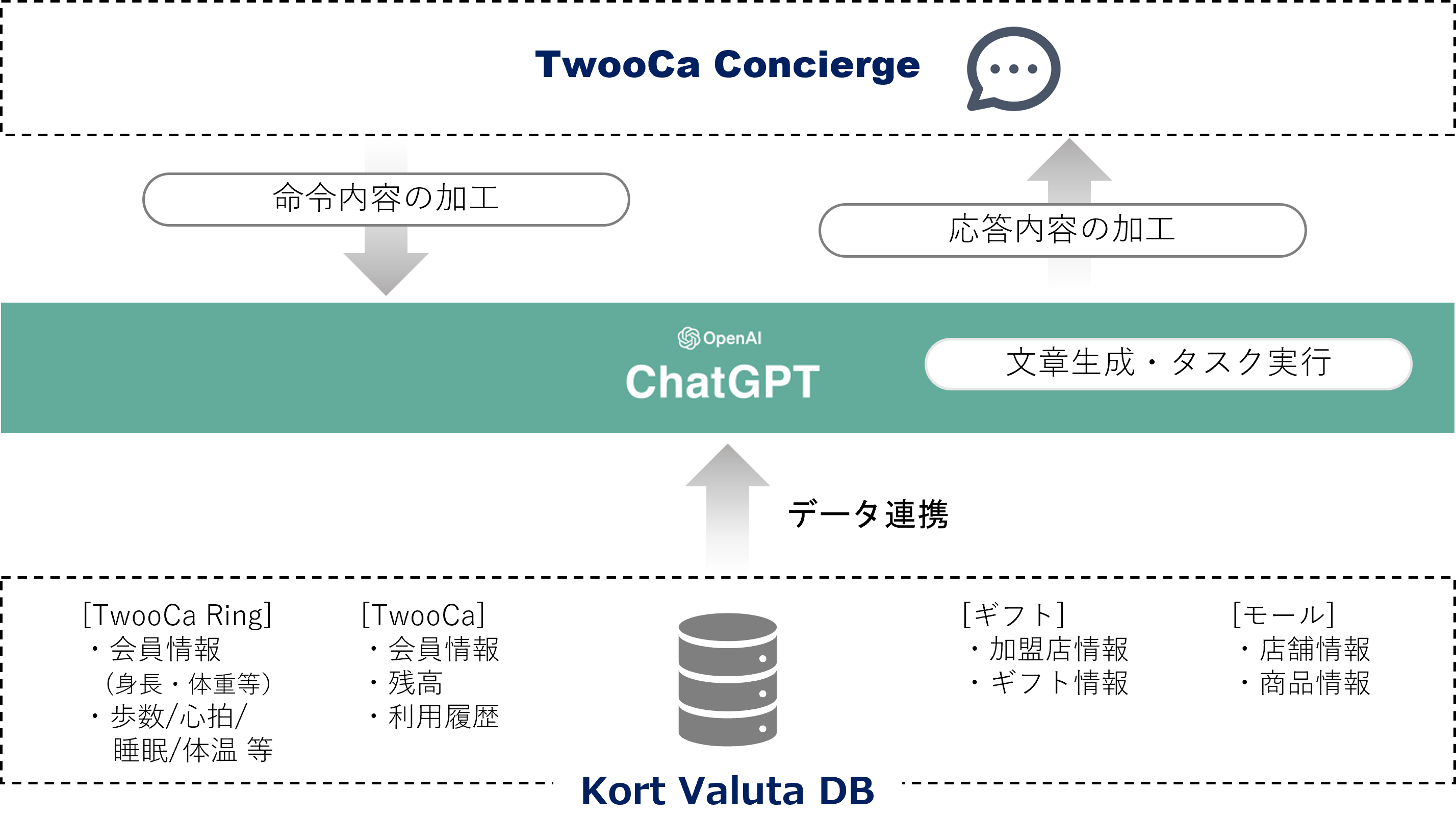 決済機能付きデジタルID「TwooCa」を運営している 株式会社 Kort Valuta(本社:東京都目黒区、代表取締役 柴田秀樹 以下 KV社)は「ChatGPT」のAIチャット機能を利用した「TwooCa Concierge(ツウカ コンシェルジュ)」のサービス開発を開始したことをお知らせます。