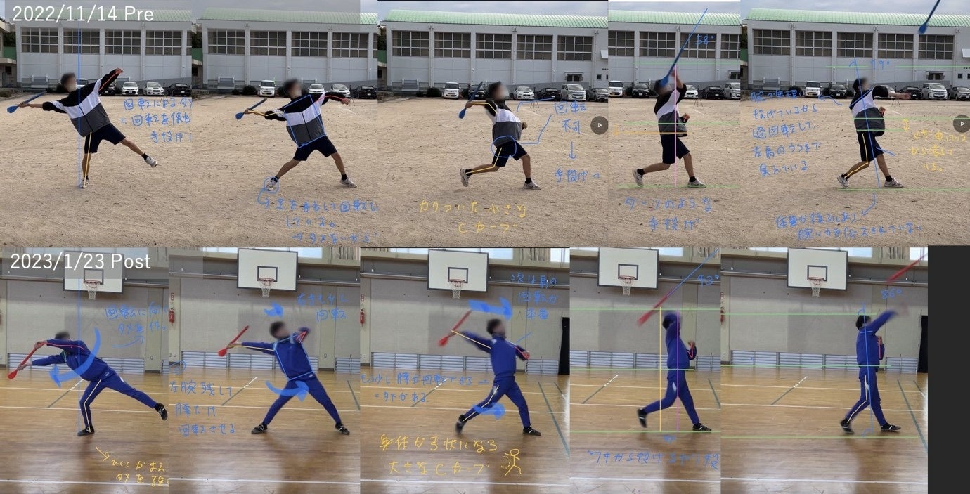動画2:遠隔部活指導実施前後のパフォーマンス比較