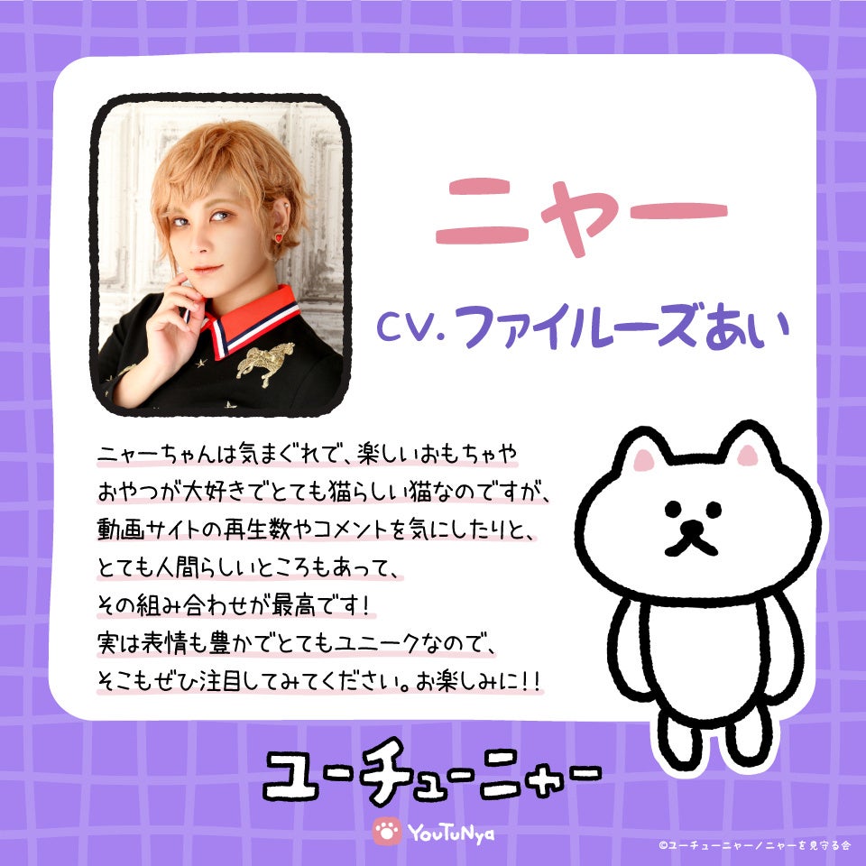 「ニャーちゃんは気まぐれで、楽しいおもちゃやおやつが大好きでとても猫らしい猫なのですが、動画サイトの再生数やコメントを気にしたりと、とても人間らしいところもあって、その組み合わせが最高です!実は表情も豊かでとてもユニークなので、そこもぜひ注目してみてください。お楽しみに!!」