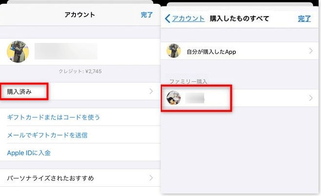 5.App Storeを開き、「購入済み」のところに入ると、ファミリー購入のところで別のApple IDで購入したアプリをダウンロードし、確認することができます。