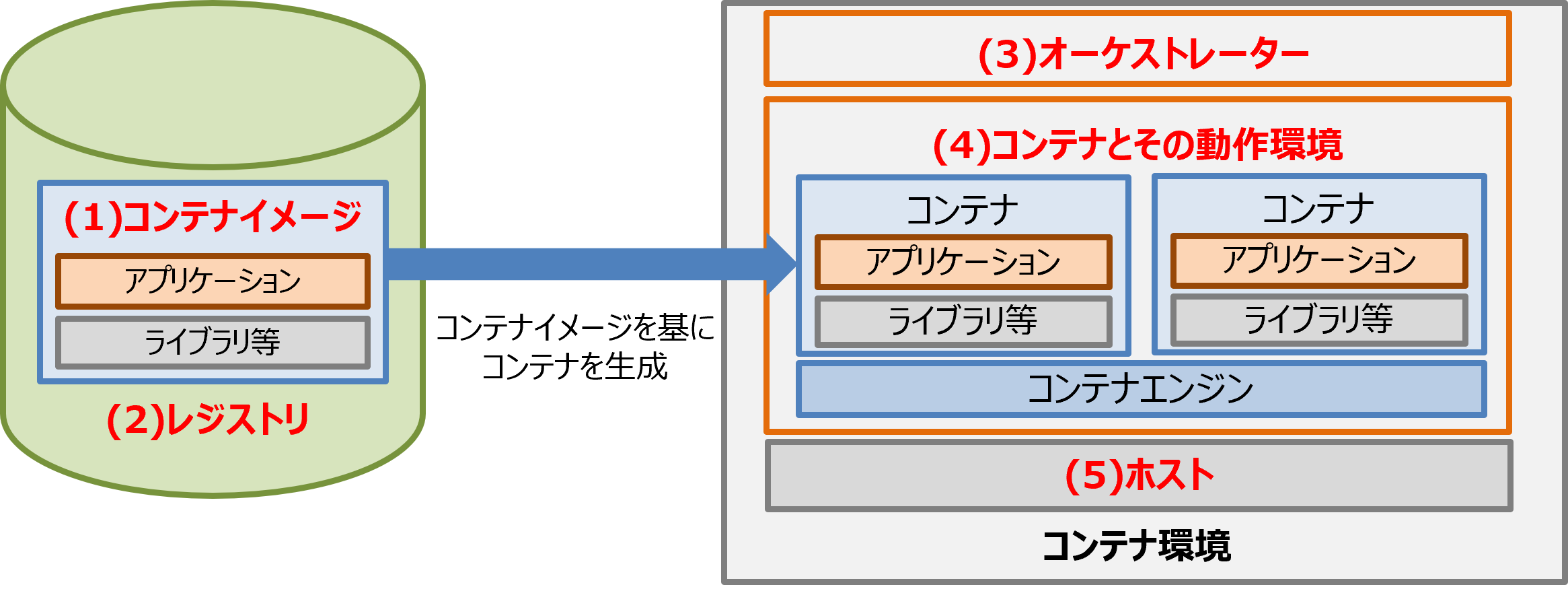 (1)コンテナイメージ:コンテナ環境の元になるテンプレート