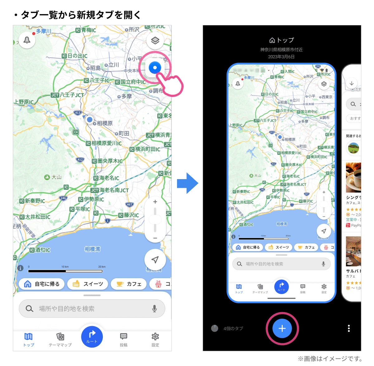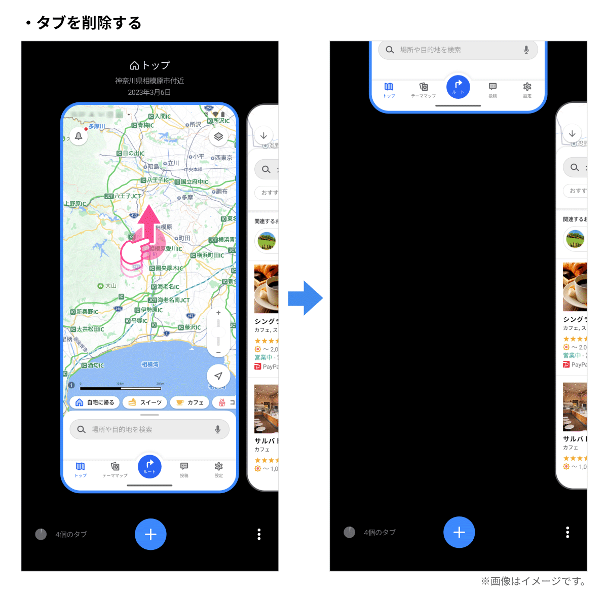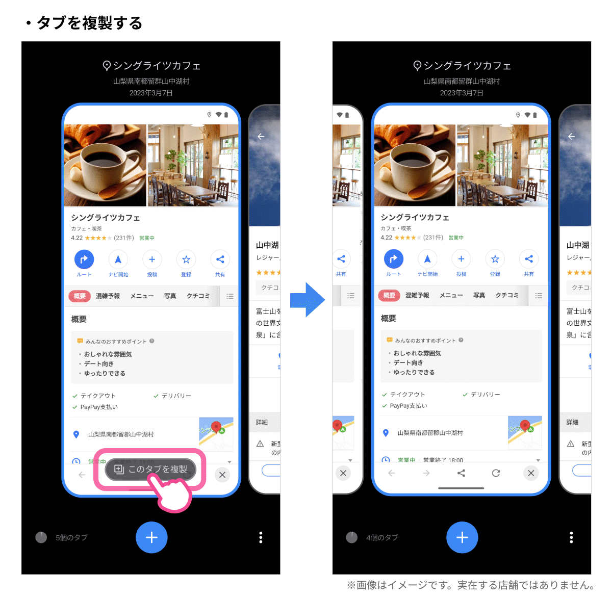 その他にも、お出かけ先の候補リストとしてタブを保存して比較検討ができることに加えて、開いているタブはアプリを終了しても保持されるため、次回起動時に前回調べていた情報を再度確認できます。