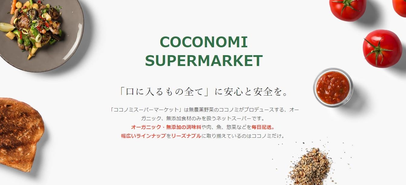 「ココノミスーパーマーケット」は定期野菜宅配のココノミがプロデュースする、オーガニック食材・無添加食材を含む幅広い食材を取り扱うネットスーパーです。