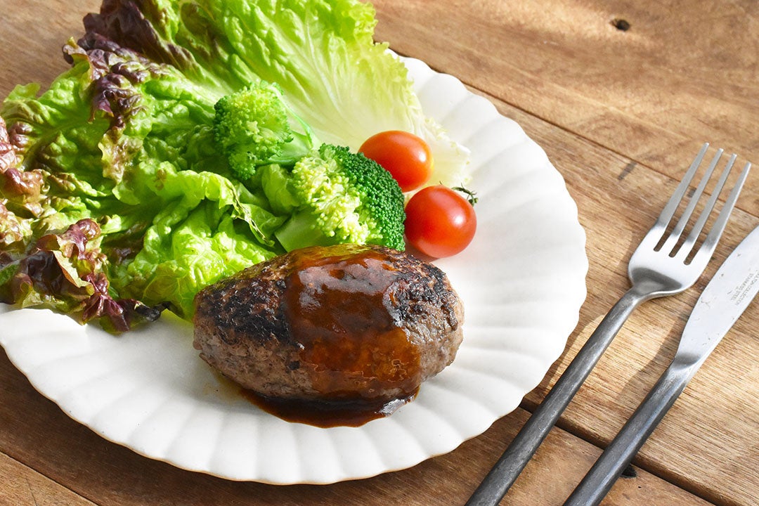 抗生物質や成長促進剤に頼らず地元で収穫できる餌を独自にブレンドした飼料と広くゆったりとしたスペースで、自然なものだけで育て上げた牛や豚たちを販売するゆうぼくさんのハンバーグ。卵・牛乳・パン粉などのつなぎを一切使わない独自製法なので、まるでステーキのような溢れる肉汁とお肉の味わいが口いっぱいに広がります。ソースもおすすめですが、ぜひお塩や醤油などでシンプルに味わってみてください。