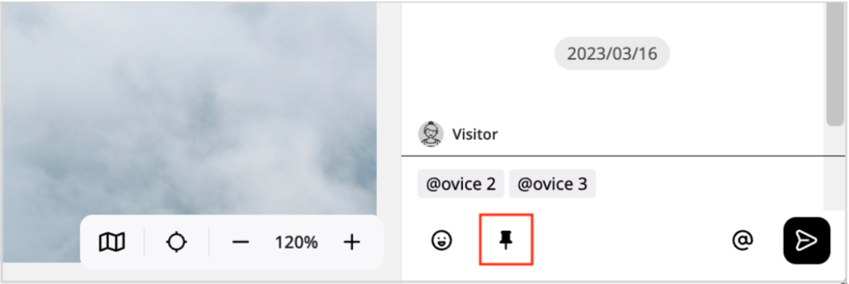 oviceのスペース内でチャットでのコミュニケーションを行う際、送りたい相手をピン留めすると、チャット送信後もメンション先がテキストエリアに保持され、再度メンションをすることなく簡単に続けてやり取りができるようになりました。
