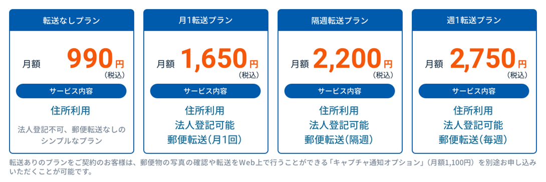 (※2)月額990円(税込)の転送なしプランの場合、法人登記はできませんので、ご了承ください。