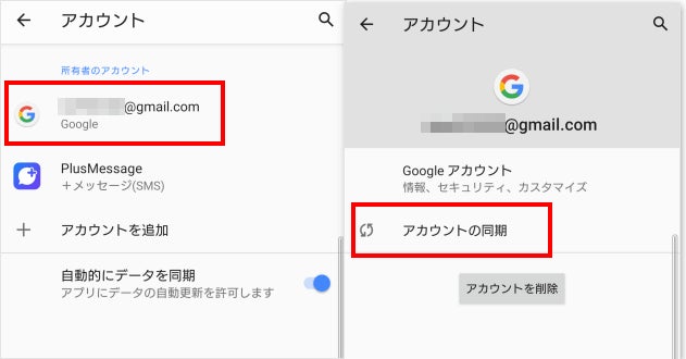 Step2、アカウントを選択して、「アカウントの同期」をタップします。