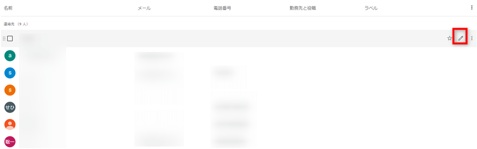 Step 3.編集したい連絡先先をクリックして「編集」ボタンをクリックします。