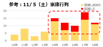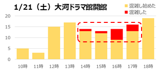 混雑緩和の観点では、大河ドラマ館は、開設から1カ月で来館者数約5万人にのぼり、大きな賑わいが発生していますが、すいすい岡崎ナビサイト(https://suisui-okazaki.jp/)で配信しているリアルタイム混雑情報のデータ(図2)を用いて、同程度の混雑状況であったイベント開催日と比較してみると、1時間当たりの混雑アラート発出回数は同水準である一方、激しい混雑を検知した“混雑した”アラートの発出回数が減少しました。以上のように、岡崎市によって実施された混雑緩和に向けた施策の一つとして、大きな混雑の回避に繋がっているとの前向きな成果が得られました。
