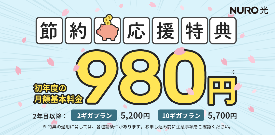 ・「NURO 光」の初年度月額基本料金が6か月間980円割引になる「節約応援クーポン」を配布。