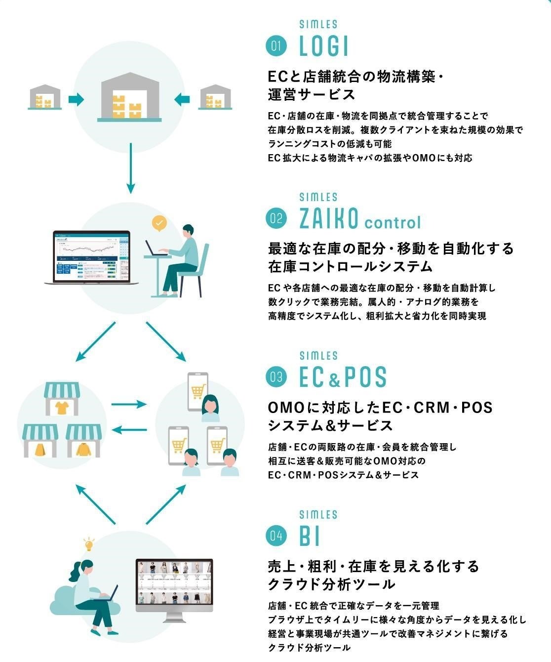展示ブースでは、店舗・EC・物流をシームレスに繋ぐ、販売と物流のトータルソリューション「SIMLES(シムレス)」を体験できるデモンストレーションを実施いたします。