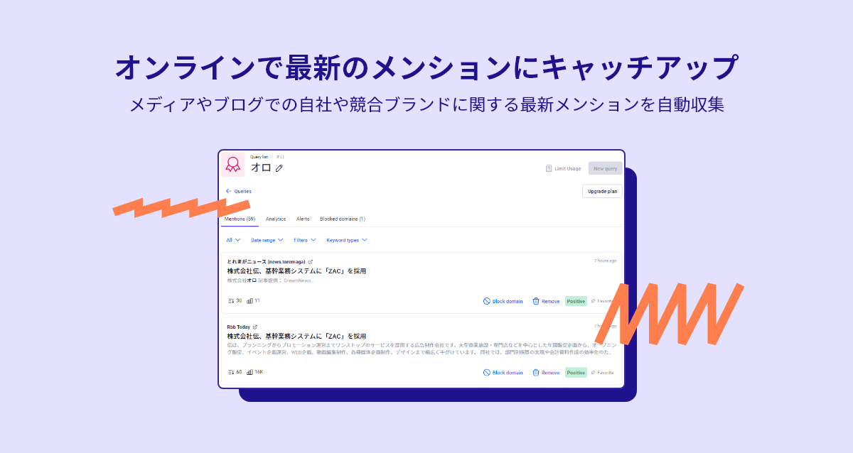 ◆ブランド名やキーワードを指定して、ニュースやブログ記事内のメンションを収集