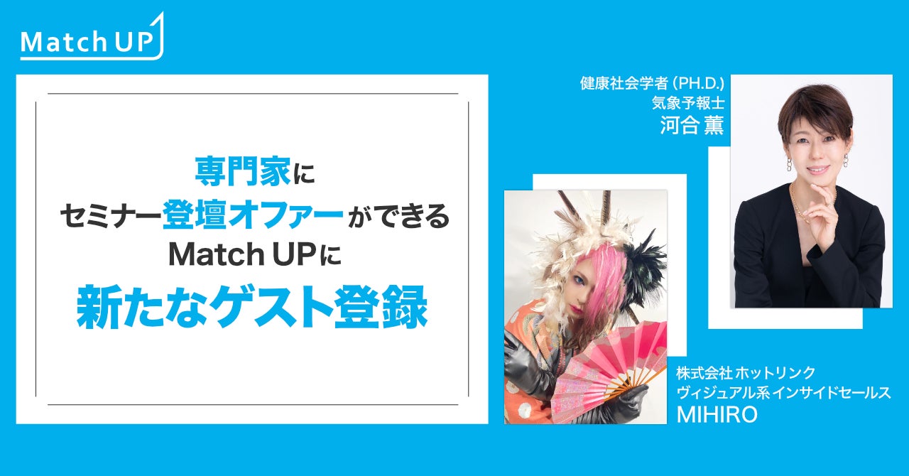 当社は、国内最大級のオンライン展示会「ITトレンド」や、ビジネス動画プラットフォーム「チラヨミ」を通して、多くの企業様、業界専門家の方とのお取引があり、自社のマーケティングノウハウを活かし、このような課題を解消するため、業界専門家にセミナー登壇オファーができるマッチングプラットフォーム「Match UP」の提供を開始いたしました。