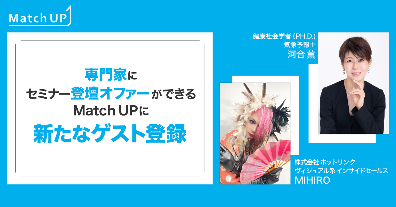 今後も続々と豪華専門家の登録を予定しています。当社では、今後も引き続き、お客様のご意見、ご要望を参考に、ご活用いただきやすいサービスにしていけるよう開発・運営を進め、「Match UP」におけるサービス体験の向上に取り組むことで、企業のマーケティング・営業活動をサポートしてまいります。