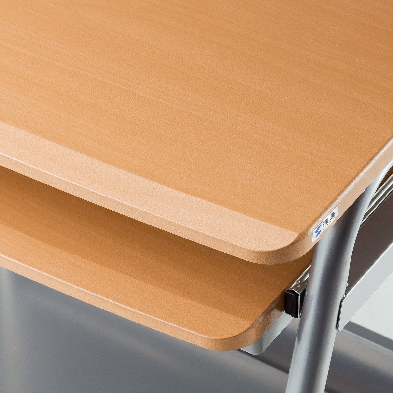 スライドレールで滑らかに出し入れできるキーボード用スライダーは、キーボードを置けるのはもちろん、本や手帳などを置いて作業スペースとしても活用できます。使わないときには収納できるのでホコリ防止にもなります。