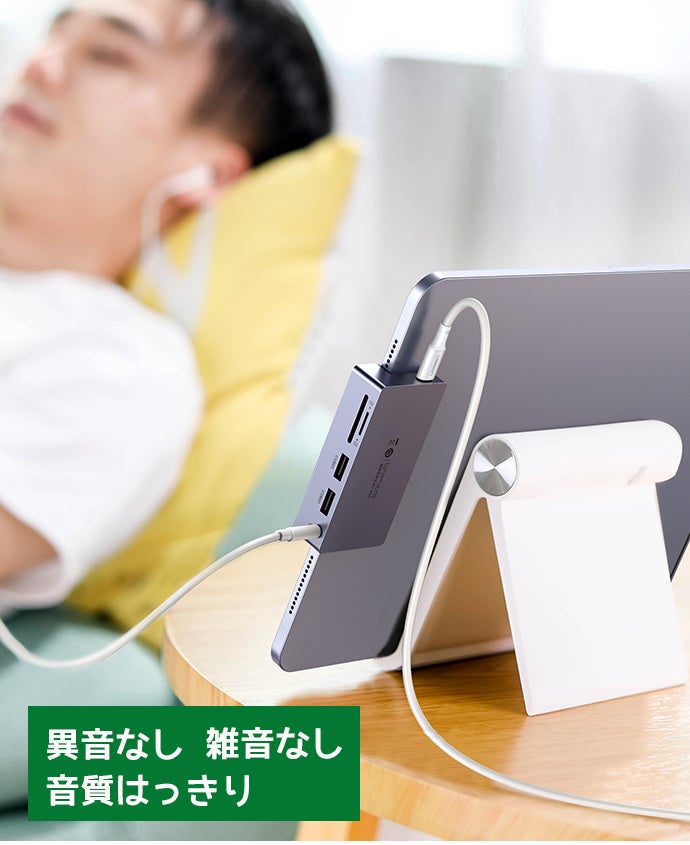 在宅リモートワーク、映画鑑賞、音楽鑑賞など、iPadの効率性をさらに高め、ハブを装着するだけでパソコンのように使用することができます。ユーザーの作業効率とQOL(Quality of Life)を一挙に向上!