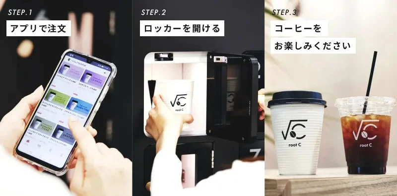 「root C」はアプリで時間と受け取り場所を指定し、完全無人・非接触でスペシャルティコーヒーを受け取ることができるAIカフェロボットです。ユーザーは「root C」の前で待つことなく、移動途中に注文も可能。パーソナライズ診断 root C MATCH™ を利用して、ライフスタイルや嗜好に合わせたコーヒーをご提案します。単品購入の他、サブスクリプション(月額定額制)でご購入できます。