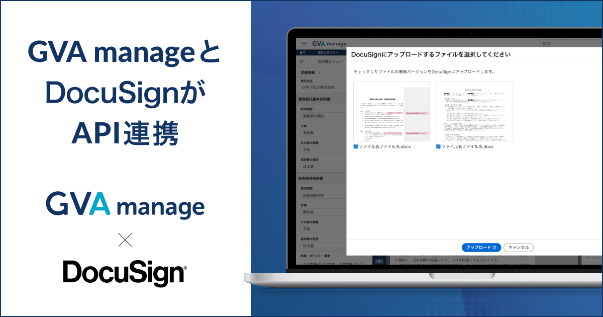 なお、本API連携を記念して、2023年6月30日までにGVA manageをご契約いただくと、ドキュサインとの連携オプション(月額:1万円(税抜き))が無料になるキャンペーンを実施いたします。