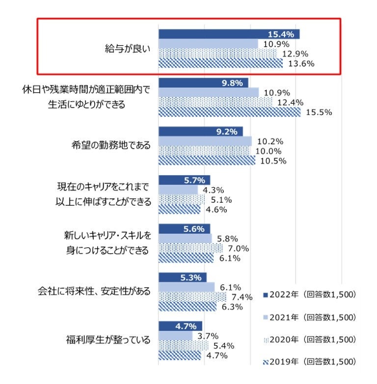 今回の調査では、2022年の転職者は例年よりも「給与」をより重要視していたことがわかりました。