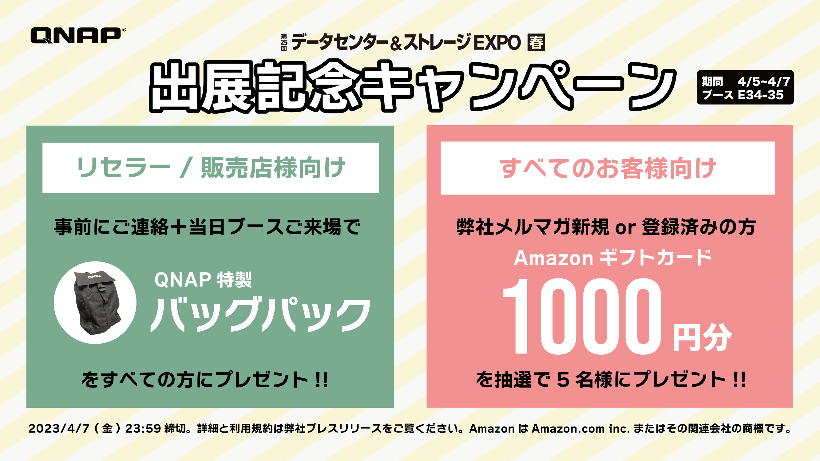 【すべてのお客様】会期中ご来場しない方もご応募いただけます。QNAPのメルマガ登録で抽選5名様にAmazonギフトカード1000円分をプレゼントいたします。