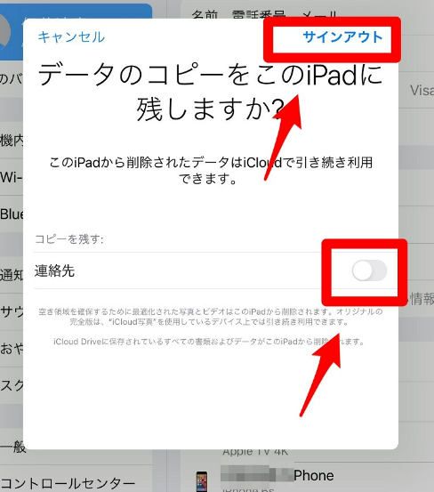 Step1:iPadの「設定」アプリ‐「Apple ID」へ進み、「サインアウト」をタップします。
