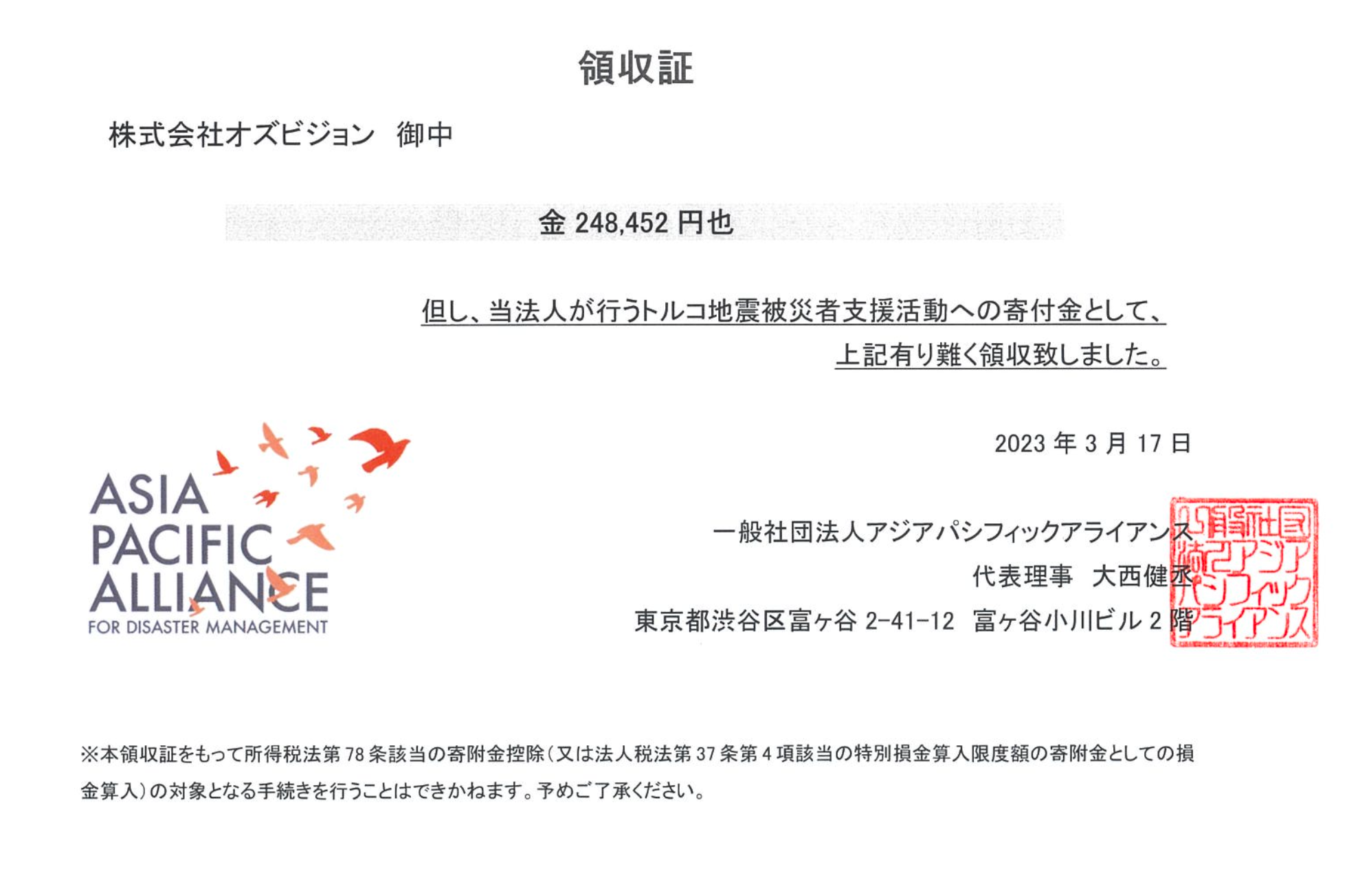 ・募金先:一般社団法人アジアパシフィックアライアンス(A-PAD)