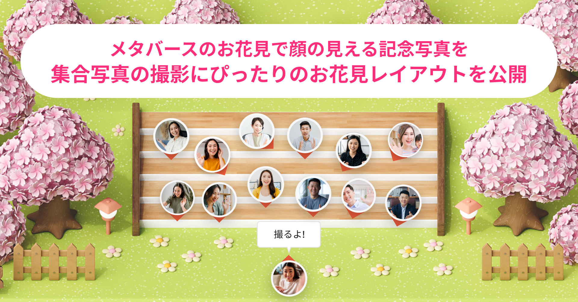 そうした動きを受け、今回、新たにお花見の記念撮影にぴったりなレイアウトを公開しました。距離を超えて集まれることに加え、アバター内に小さなライブ映像を表示する「ライブアバター(β版)」機能を使用することで、春を感じながら顔も見える記念写真を残すことができます。