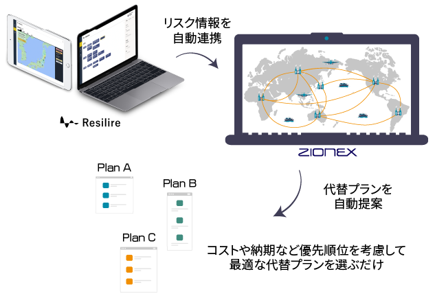 ZIONEXが提供する「サプライプランニング」システムとResilireが提供する「サプライヤーネットワーク可視化、リスク検知」システムのサービス連携、新機能開発検討を両社で行い、利便性向上並びにリスクに強いサプライプランニングを実現することを目指します。
