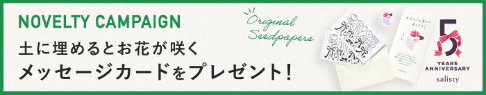 4/3(月)より、salisty公式サイトでお買い上げいただいた全ての方にオリジナルシードペーパーをプレゼントいたします。なくなり次第終了となりますので、お早めにご検討下さいませ。