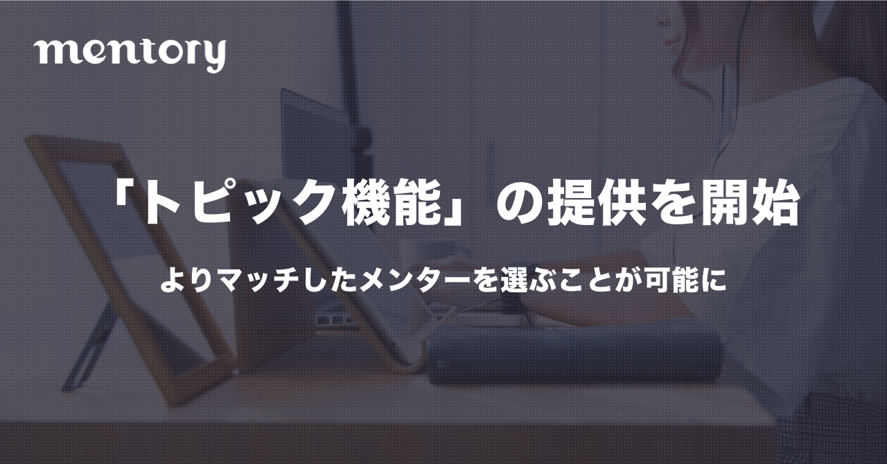 メンタリー株式会社(本社:京都府京都市、代表取締役社長:今谷 祐通)はエンジニア相談サービス「mentory」において「トピック機能」の提供を開始いたしました。