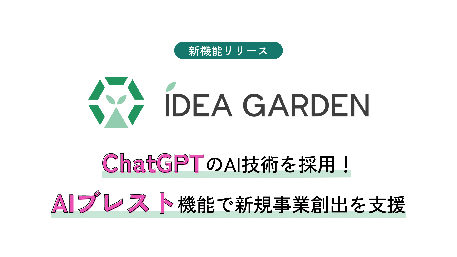 IDEA GARDENでは、2023年2月に本サービス初のAI機能「AI発想アシスタント(β)」を実装しており、「AIブレスト機能(β)」は新規事業のアイデア創出においてさらなる効率化を図るものです。今後もIDEA GARDENは、最新のAI技術を活用して人の創造力を支援するサービスを継続的に提供してまいります。