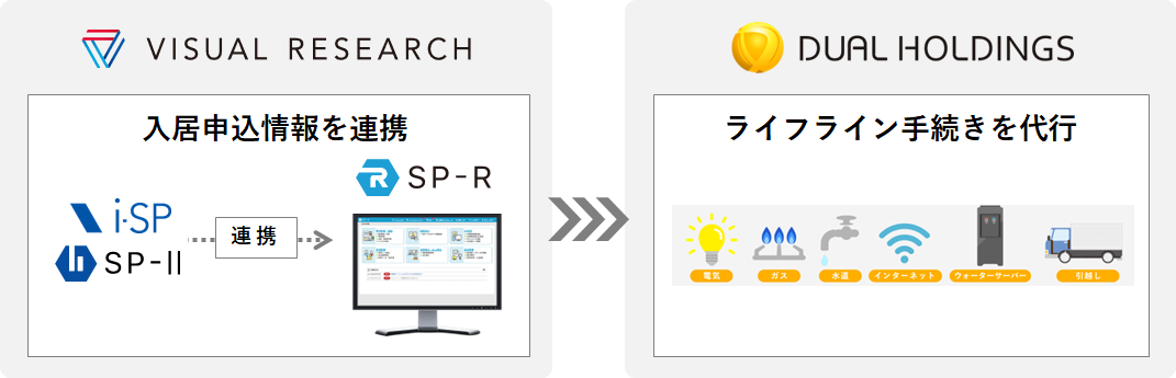 ビジュアルリサーチが提供する賃貸仲介システム「SP-R」(※2)と、DUALホールディングスが提供する「ライフラインConcierge」について、連携を進めております。