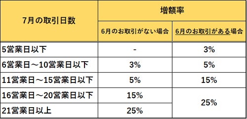 ​さらに、期間中にキャッシュバック対象となる取引をされた日数に応じて、最終キャッシュバック額から以下の通り増額いたします。