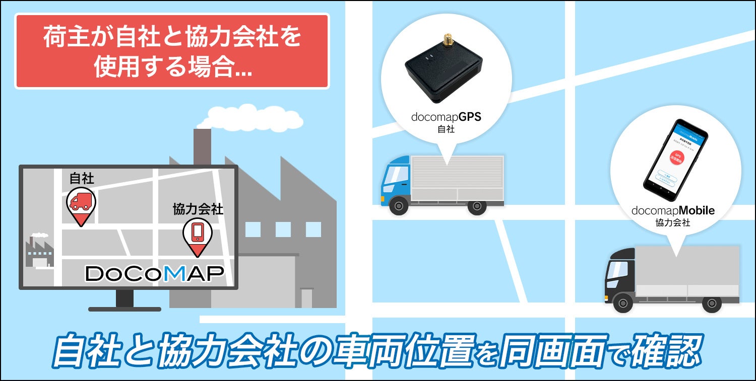 株式会社ドコマップジャパンは、2016年12月にNTTドコモ社の呼びかけで、運送業に特化するIoTを活かした社会貢献可能な技術の提唱・開発が出来る企業として2017年8月に設立。昨今増え続ける物流需要、少子高齢化や厳しくなる労働時間管理等により運送形態の改革が必要な産業インフラ『物流』の危険的状況をIoT技術でなんとかするという課題を対し、GPSによる車両位置情報管理システム「DoCoMAP」をIT機器の導入が進んでいない運送業者にも低価格で販売・供給し、業界の「働き方改革」に活かせるようにサポートしています。