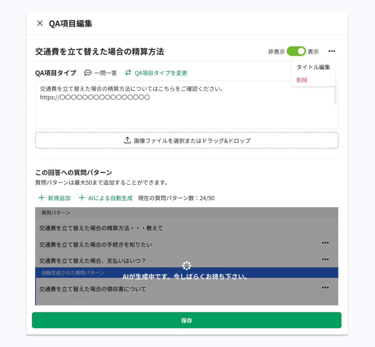 回答文章を用意するだけ、ワンクリックで複数の質問パターンを自動生成!