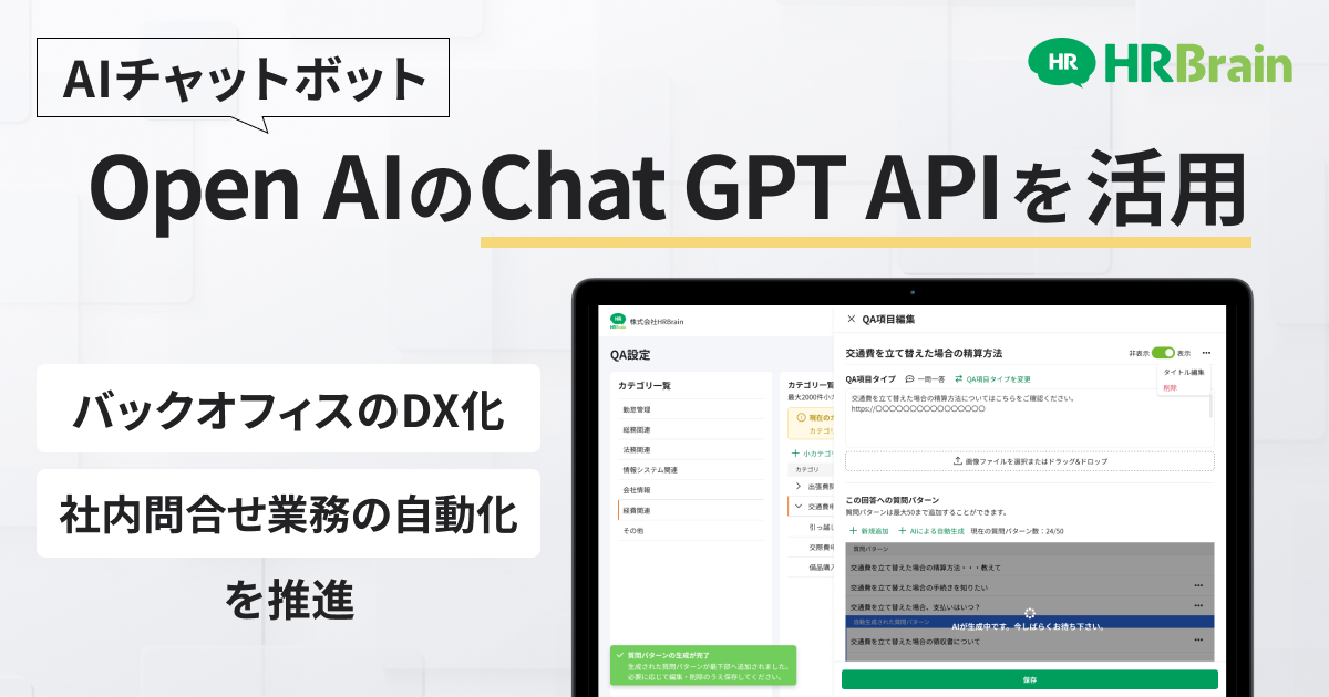 この課題に対し、HRBrainはバックオフィス業務のDX化における効率化を支援するために、OpenAIのChatGPT APIを活用した機能をリリースします。