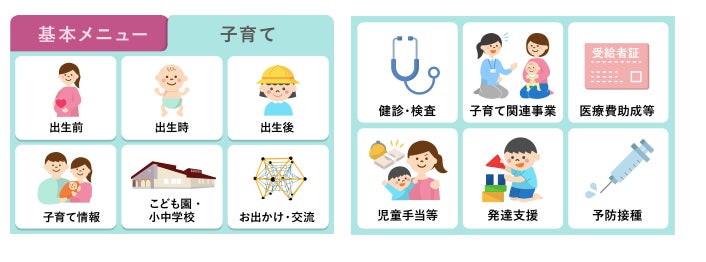 ■LINE公式アカウントで提供されるコンテンツは以下の通り子育てに関する情報