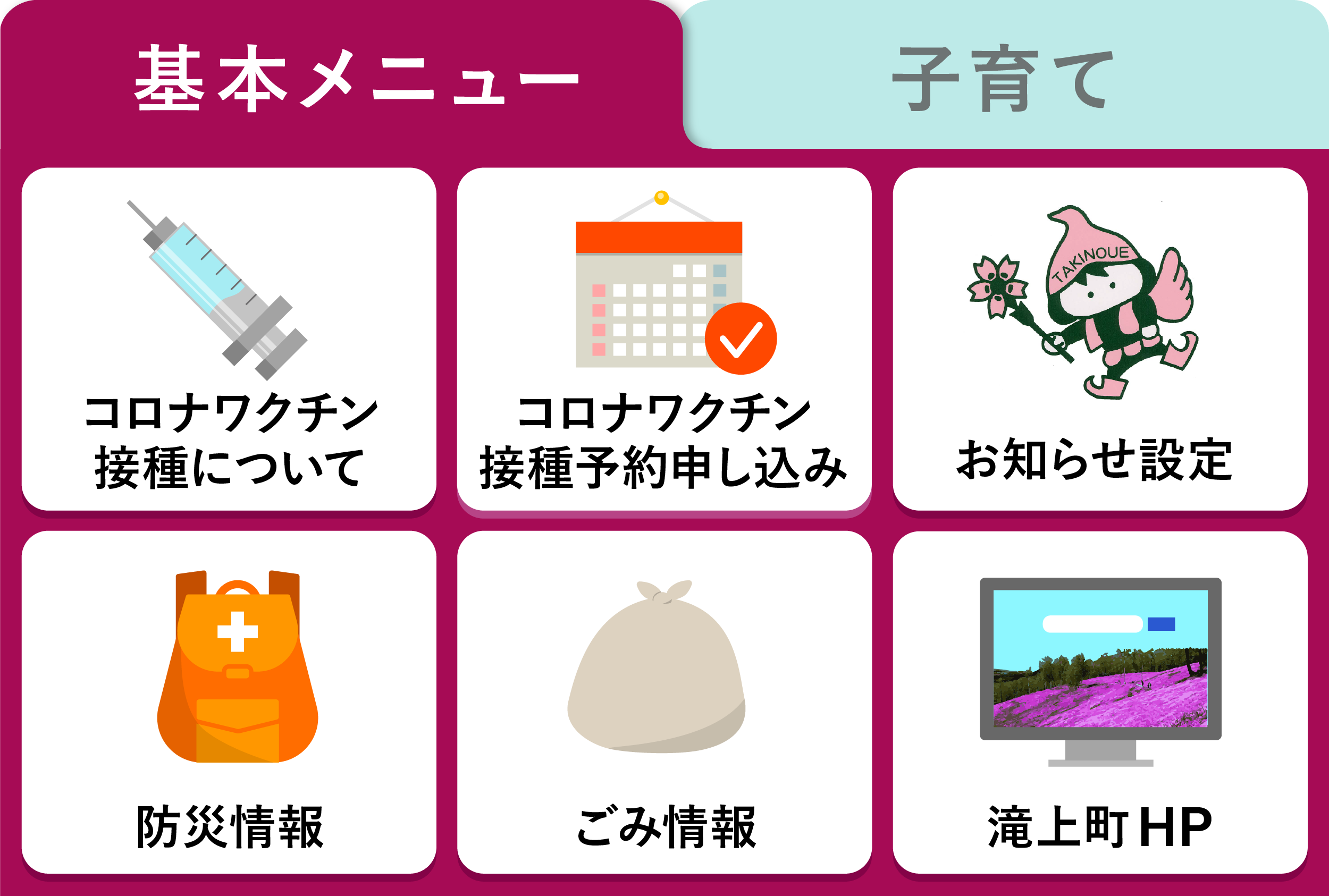滝上町では既存で公開されいているLINE公式アカウントのコンテンツに加え、メニュー画面もリニューアルし、欲しい情報を見つけやすく、たどりつきやすい画面になりました。また、「子育て」に関する情報を大幅リニューアルし、一目でチェックできる様になりました。