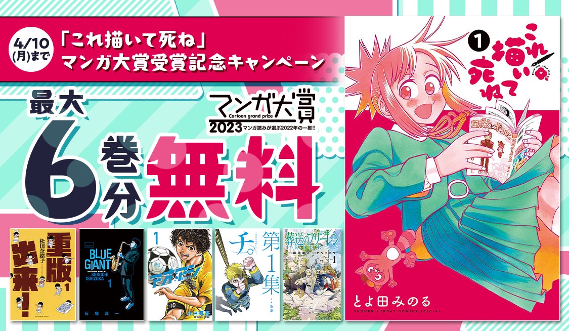 「これ描いて死ね」、『マンガ大賞2023』受賞記念!サンデーうぇぶりにて、歴代ノミネート作品の無料話増量キャンペーンを開始!