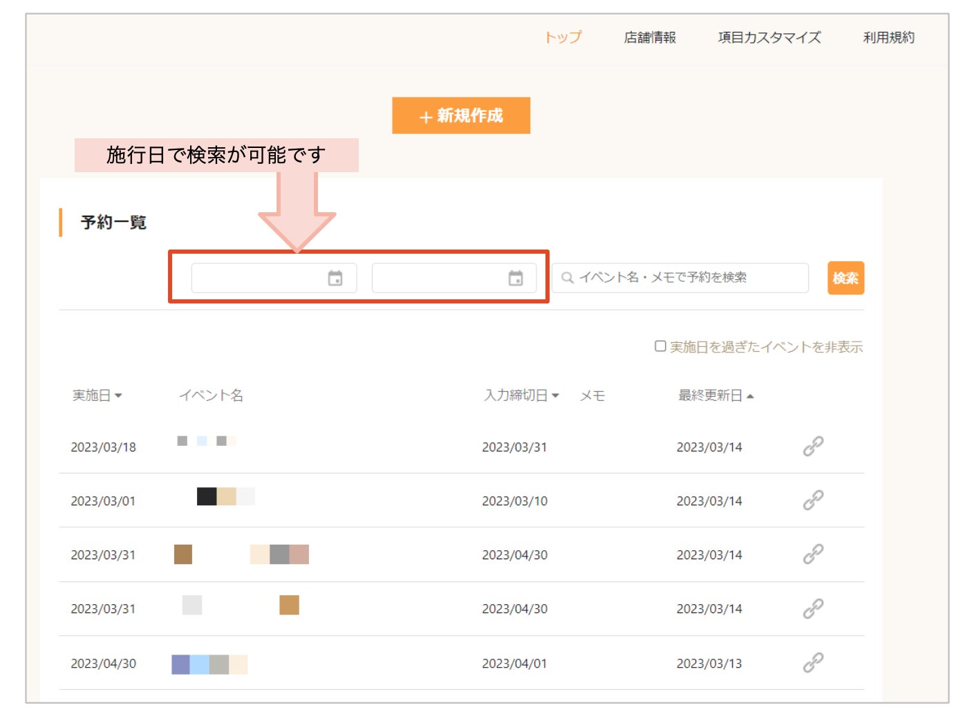 - アップデート(3)イベント施行日で絞り込める検索機能を追加