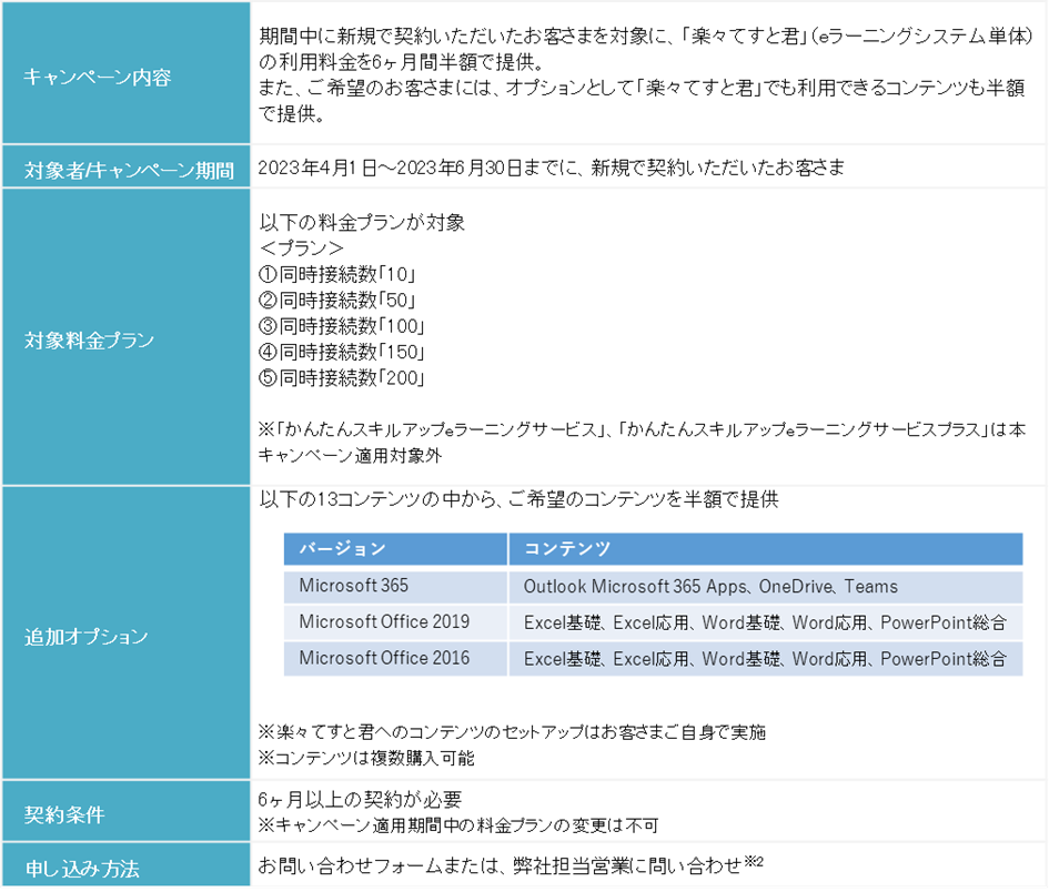 ※3 「かんたんスキルアップeラーニングサービス」、「かんたんスキルアップeラーニングサービスプラス」につきましては、本キャンペーンの対象外です。サービスの詳細は、以下をご参照ください。
