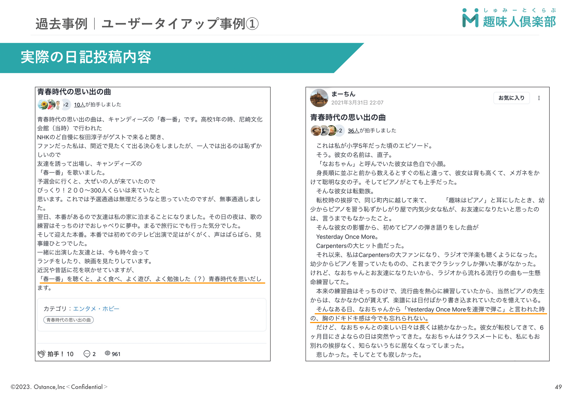 下記の事例のように、多くのユーザーからテーマにまつわる日記が投稿されます。