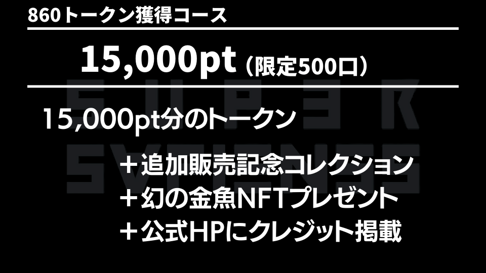 この機会に『幻の金魚NFT』と併せて、さらにパワーアップしたSUPER SAPIENSSのトークン保有特典をお楽しみください。